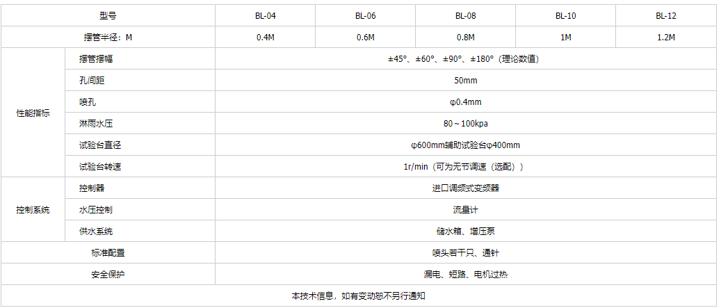 摆管淋雨试验装置适用于外部照明和信号装置及汽车灯具外壳防护。