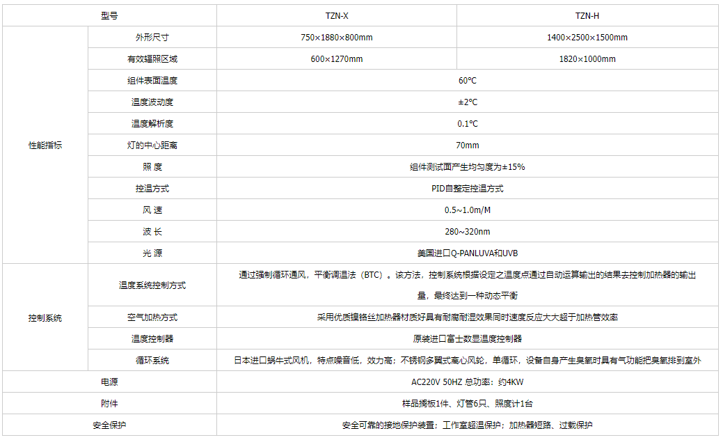 光伏组件紫外老化试验箱可满足:光伏(PV)组件紫外试验GB/T19394—2003/IEC61345:998和GB/T2423.24-9模拟地面上的太阳辐射试验方法。