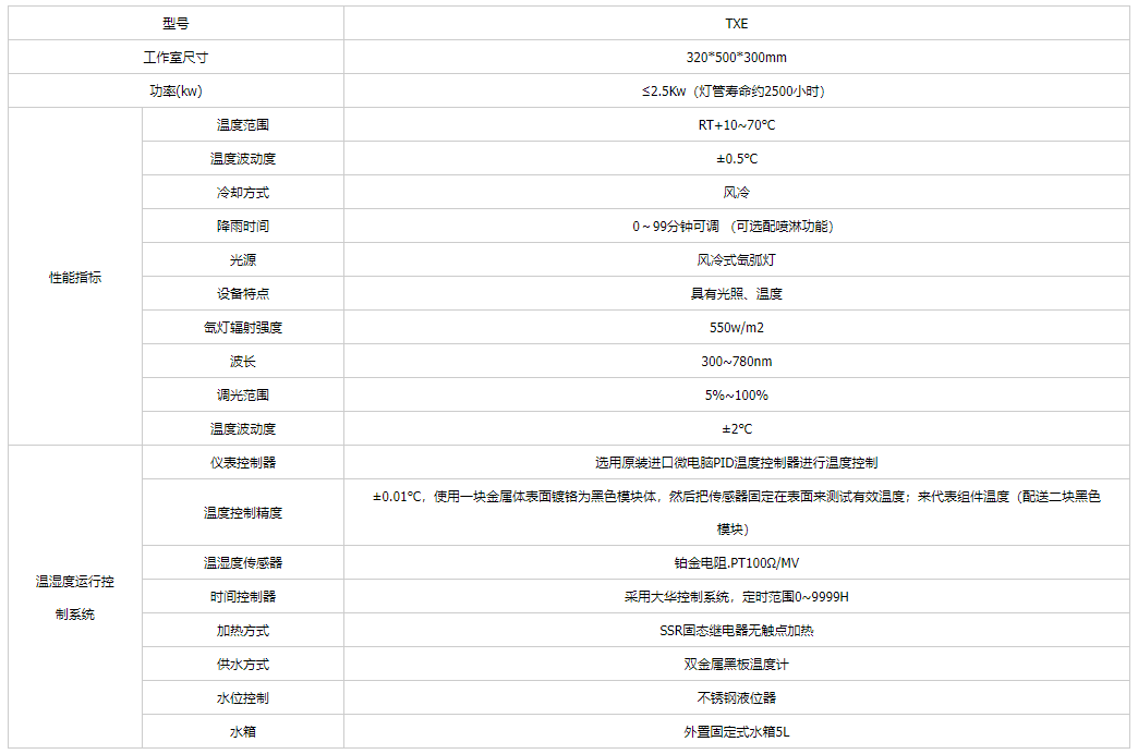 台式氙灯老化试验箱采用能摸拟全阳光光谱的氙弧灯来再现不同环境下存在的破坏性光波,可以为科研产品开发和质量控制提供相应的环境模拟和加速试验。TXE型氙灯试验箱可用于新材料的选择、改进现有材料或评估材料组成变化后耐用性的变化试验,可以很好的模拟在不同环境条件下,材料暴露在阳光下所产生的变化。