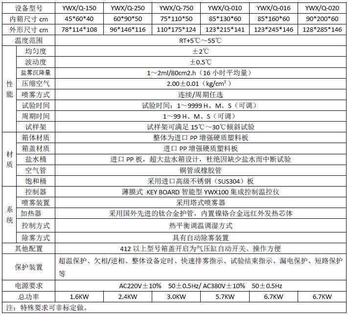 盐雾腐蚀试验箱为人工气候环境“三防”(湿热、盐雾、霉菌)试验设备之一,是模拟大气中含盐微小液滴所构成的 弥散系统的设备。被广泛应用于对电子、电工及汽车、摩托车、五金工具等产品、零部件、金属材料与制品的镀、涂层等进行盐雾腐蚀试验。性能指标符合GB/T5170.8《电工电子产品环境试验设备基本参数检定方法》的要求。该盐雾腐蚀试验箱可按GB/T2423.17《电子电工产品基本环境试验规程试验Ka:盐雾试验方法》本系列产品设计生产执行国家GB/T10587《盐雾试验箱技术条件》。以及等效的IEC、DIN、MIL、ASTM等标准进行各种盐雾试验。除用于中性盐雾试验外,也可用于醋酸盐雾试验。