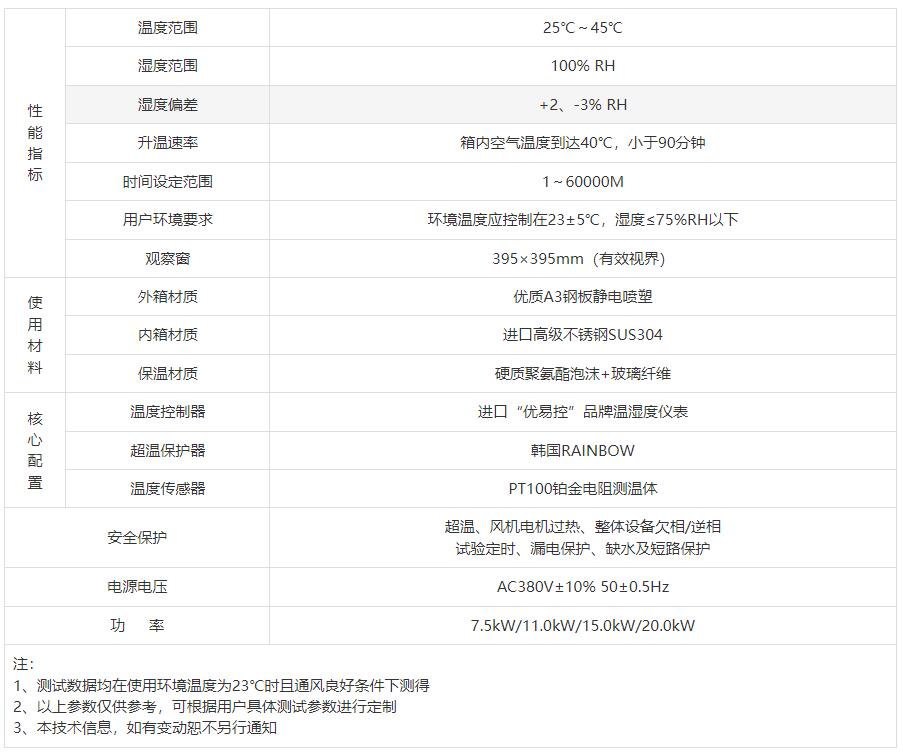 | 升温速率 | 箱内空气温度到达40℃,小于90分钟 | ||||||