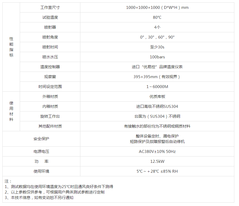 | 喷射时间 | 至少30s | ||||||