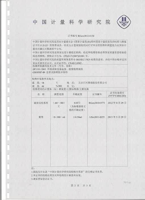 >>ÑÎÎí¸¯Ê´ÊÔÑéÏäУ׼֤Êé-Öйú¼ÆÁ¿Ôº-½­ºÓĻǽ