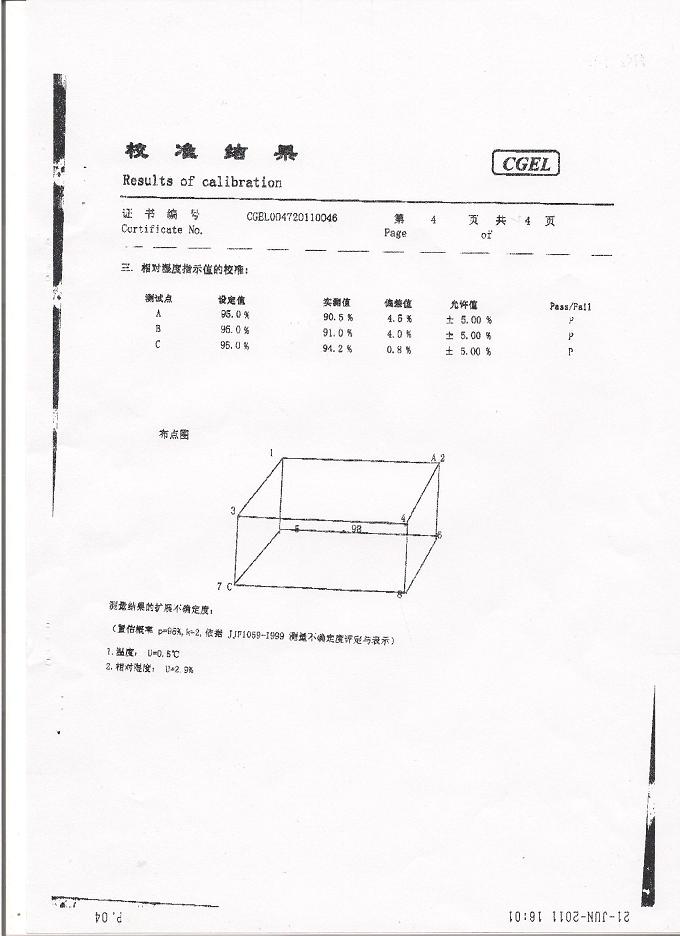 >>高低温交变湿热试验箱校准证书-广东检验所-万家乐