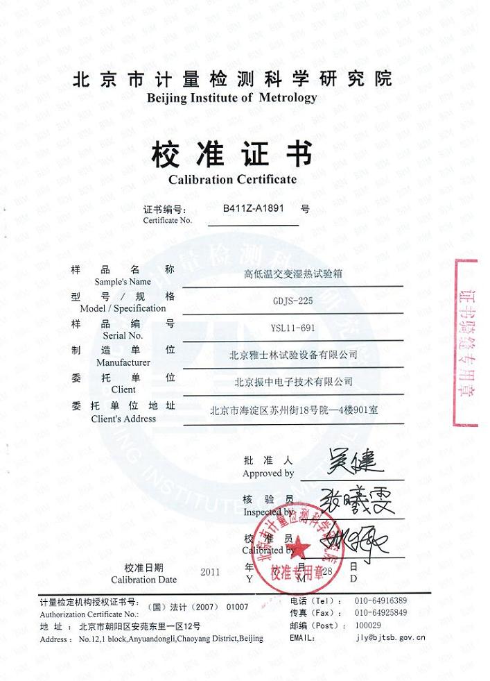 ¡¤¸ßµÍν»±äʪÈÈÊÔÑéÏäУ׼֤Êé-±±¾©¼ÆÁ¿Ôº-ÕñÖеç×Ó