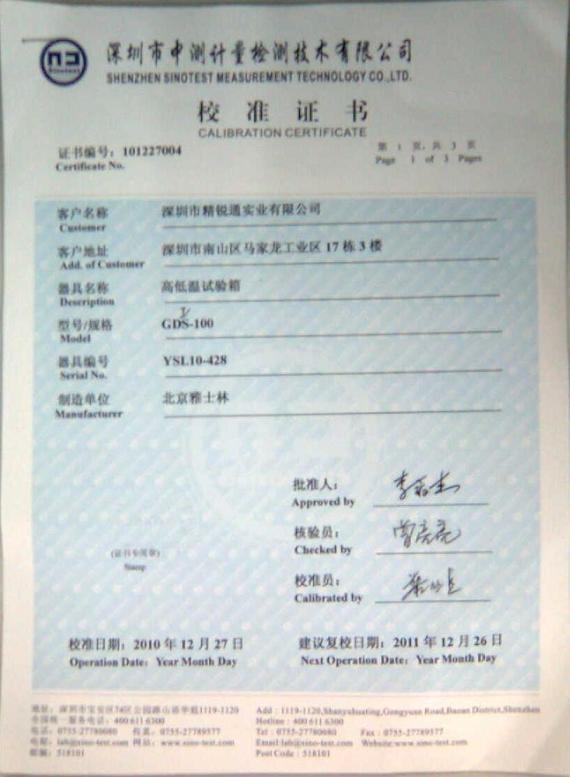 >>¸ßµÍν»±äʪÈÈÊÔÑéÏäУ׼֤Êé-ÉîÛÚÖÐ²â¼ÆÁ¿-ÉîÛÚ¾«Èñͨ