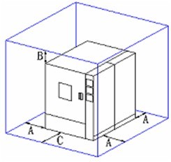 9¡¢¸ßµÍÎÂÊÔÑéÏäÖÜΧӦÁôÓÐÊʵ±µÄʹÓü°Î¬»¤¿Õ¼ä£¬ÈçÏÂͼËùʾ£º×¢£ºA£º²»Ð¡ÓÚ60cm B£º²»Ð¡ÓÚ60cm C: ²»Ð¡ÓÚ70cm