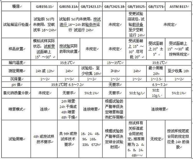 ÑÎÎíÊÔÑéÏäÒª±£Ö¤ÊÔÑé½á¹ûµÄÕýÈ·ÐÔ£¬±ØÐë¿ØÖÆºÃÊÔÑé¹ý³Ì¡£ÊÔÑé¹ý³ÌµÄ¿ØÖưüÀ¨£ºÊÔÑéÏäÔËÐмì²é¡¢ÑùÆ··ÅÖá¢ÏäÄÚ±©Â¶ÇøÎ¶ȡ¢³Á½µÒºµÄ²ÎÊý£¨³Á½µÁ¿¡¢PHÖµºÍÂÈ»¯ÄÆÖÊÁ¿Å¨¶È£©µÈ£¬²»Í¬±ê×¼¶ÔÑÎÎíÊÔÑé¹ý³ÌµÄ¿ØÖÆÒªÇó¼ûÏÂ±í£º