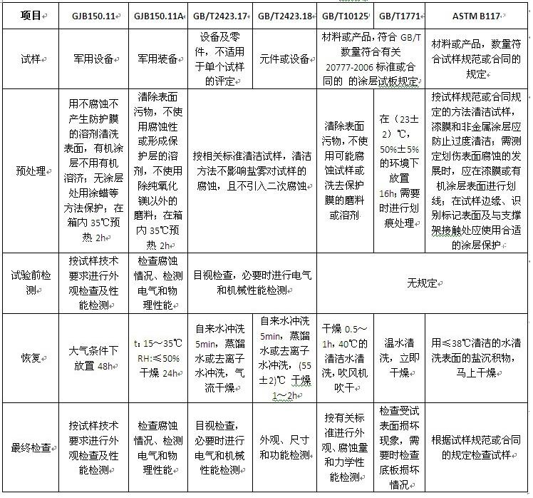 盐雾试验箱的试样主要有试片(试板)和产品(含零部件、元器件)两类。各种标准对试样的种类有不同的规定,对试样的数量一般没有具体规定,详细要求见下表: