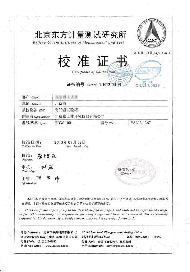 >>¸ßµÍÎÂÊÔÑéÏäУ׼֤ÊéÄ£°åÏÂÔØ¡ª±±¾©¶«·½¼ÆÁ¿Ëù