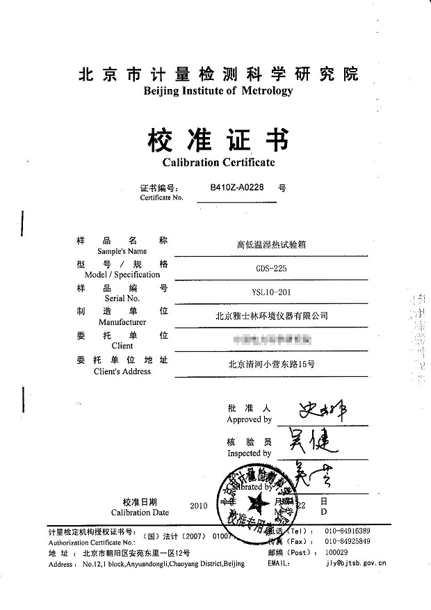 ¡¤¸ßµÍÎÂʪÈÈÊÔÑéÏäУ׼֤ÊéÄ£°åÏÂÔØ¡ª±±¾©¼ÆÁ¿Ôº