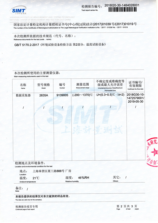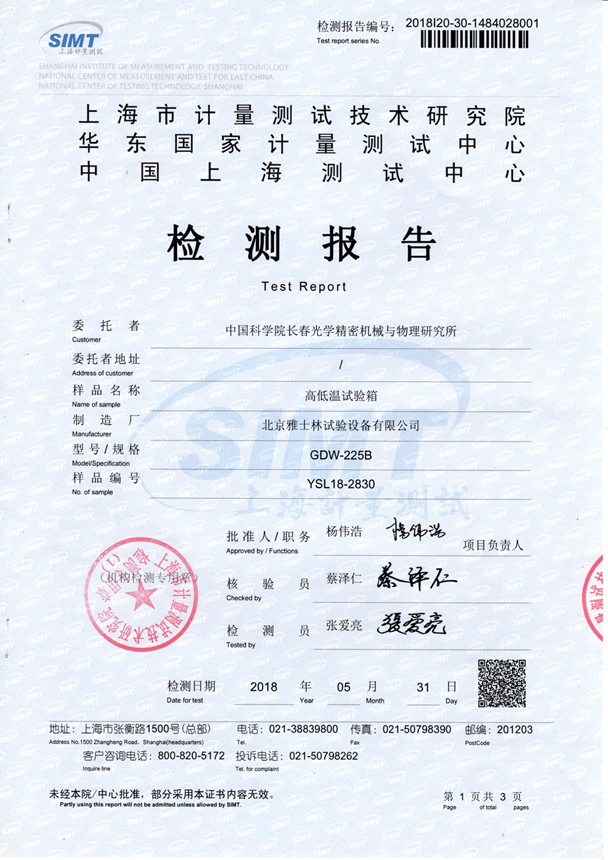 ¸ßµÍÎÂÊÔÑéÏäÔÚÊ×´ÎͶÈëʹÓÃǰ£¬Ó¦¶Ô¿É·´Ó³É豸ÐÔÄܵÄÏà¹Ø²ÎÊý½øÐÐÏêϸȷÈϼ°²âÊÔ£¬ÔÚÈÕ³£Ê¹ÓÃÖÐÔòÓ¦ÒÀ¾ÝËùʹÓõÄÊÔÑé·½·¨½øÐжÔÊÔÑé²ÎÊýµÄÒªÇó£¬ÐèÈ·ÈÏÆäÐÔÄÜÊÇ·ñÂú×ãÊÔÑé²ÎÊýµÄÒªÇ󡣸ü¶àµÄÓû§»áÑ¡ÔñÓɵÚÈý·½¼ì²â»ú¹¹½øÐмì²â£¬²¢³ö³§¼ì²â±¨¸æ£¬ÈçÏ£º